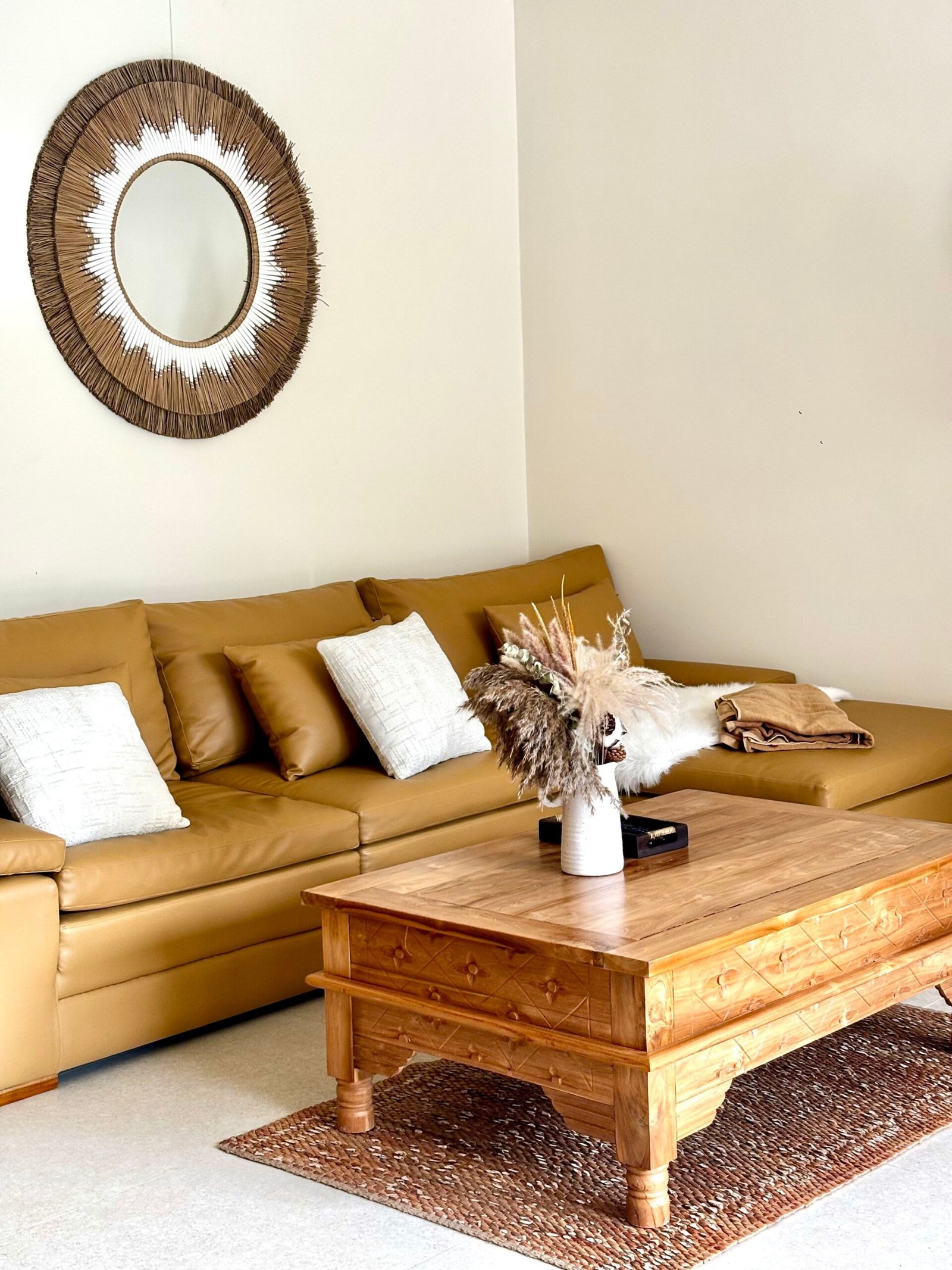 Un salon lumineux et climatisé avec canapé confortable et Smart TV (Netflix/YouTube et Iptv mondiale).